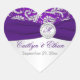 This monogrammed heart shaped purple and silver damask wedding favour sticker or envelope seal has a FAUX ribbon and jewelled brooch that matches the wedding invitation shown below. You can change the text to say whatever you want, and you can also change the sticker size and/or shape. If you require any other matching items in this design, please email your request to niteowlstudio@gmail.com.