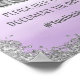 Poster print for wedding hashtag sign with faux silver glitter design and light purple ombre watercolor background.