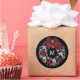 Silver and Red Holiday Wreath with Monogram Classic Round Sticker
