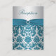 ** Please note that the ribbon and jewels are printed omages, and are not real. This silver and teal damask enclosure card matches the Sweet Sixteen invitation and other items shown below. You can change the word "reception" if you need it to be a directions/map card. If there are any other matching items you require, please email niteowlstudio@gmail.com.
