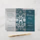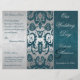This elegant silver and teal damask wedding program matches the wedding invitation and collection shown below. Fold the program down the centre. If you need any help customising this with your own information, or if you have any requests, please email niteowlstudio@gmail.com. ***PLEASE NOTE that if you upgrade to the more expensive paper, that it is a light cardstock that does not fold well.