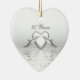 Heart-shaped hanging ornament with my original image of two dolphins and a silver heart on shining waters. Customisable text says "25 Years".