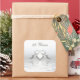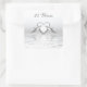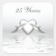 Square sticker with a unique silver-coloured scene of two dolphins and a silver heart on shining waters. Customisable text says "25 Years".