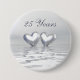 Button with my original artwork of a silver coloured scene with two silver hearts floating on water. Customisable text says "25 Years".