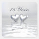 Stickers for their 25th Anniversary with my digital artwork of a silver-coloured scene with two silver hearts floating on water. Customisable text says "25 Years".