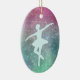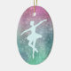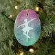 Here's an elegant Christmas ornament that features a silver aqua colored silhouette ballerina. The image is placed on a sparkling multi color background that includes pink, teal, and green. Tiny silver stars make the background sparkle.The back of the ornament has the same background, but with two text fields for you to customize. Any dancer would love this ornament! *If you'd like a different shape and need to re-position the figure or text, use Customize and drag the image to where you would like it to be.