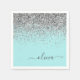 Silver Aqua Teal Blue Girly Glitter Monogram Napkin