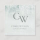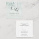 Silver Aqua Teal Brushed Metallic Monogram Initial Square Business Card