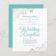 These affordable, budget friendly wedding reception invitations are the perfect choice for class, style, and beauty on a budget. Designed for guests who are invited to the reception but not the ceremony, they feature a classic white background with ornate silver faux foil curls and swirls in the corners. The typography includes fancy aqua, cyan, or bright teal coloured script lettering for a style that is at once simple and elegant. Wonderful way to invite your friends and family to share in your joy on your special day without breaking the bank.