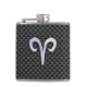 Silver Aries Zodiac Sign Black Carbon Fibre Print Hip Flask