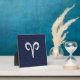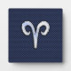 Silver Aries Zodiac Sign Blue Carbon Fibre Print Plaque
