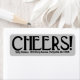 Address your party envelopes with this Silver Art Deco Cheers Address Labels. Customize it with your name and address. It features a white art deco font on a gray background.