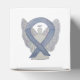 The guardian angel art party favour box features the painting of a silver awareness ribbon angel. The silver awareness ribbon colour means support for Bell's Palsy, Children with Physical or Learning Disabilities, Disability Rights, Dyslexia, Elderly Abuse, Encephalitis, Parkinson's Disease, Schizophrenia, Brain Disorders and the Disabilities- Includes Traumatic Brain Injuries (TBI), and Stalking Awareness. Let this silver ribbon help bring awareness to these causes! Silver awareness angel ribbon party favour boxes can be customised with personalised messages to make great thank you gifts for fundraisers, awareness education, or other special events or occasions.