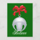This simple silver Christmas bell design says it all: BELIEVE! Pretty red bow and sparkling silver bell are perfect for the holidays on greeting cards, T-shirts, apparel, tote bags, stocking stuffers & more! PinkInkArt original!