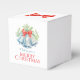 Add a touch of elegance to your Christmas holiday tables with these three silver bells event favour boxes, pretty silver blue coloured bells and greenery foliage with a bright red bow, currently reads Wishing you a Merry Christmas or you can customise with your own festive holiday greeting. Plus add your own special photo on the back. Other colours and matching items are available or can be created by request. Original hand painted watercolor art and design by Sarah Trett only for www.mylittleeden.com and www.mylittleedenweddings.com on Zazzle.