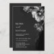 This elegant dark moody floral wedding invitation features silver gray flowers on a black background. Dark aesthetic wedding invitation.