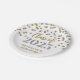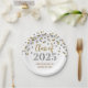 Customisable graduation party class of 2025 plates in glamourous gold and silver confetti pattern and elegant hand lettered style text.