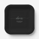 Add stylish detail to your special day with this personalised black & silver party paper plate. This design features elegant silver script " Cheers" with custom text. You can personalise the text for any event or party. Matching invitations and party supplies are available in my shop BaraBomDesign.