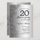 Silver Black Floral 20th Wedding Anniversary Party Invitation. Minimalist modern design featuring botanical outline drawings accents and typography script font. Elegant invite card perfect for a stylish celebration. Can be customised to any year of marriage. Printed Zazzle invitations or instant download digital printable template.