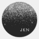 Silver Black Girly Glitter Sparkle Monogram Name Classic Round Sticker