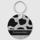 Silver & Black Glitter Cow Print Diamonds Name Key Ring