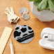Personalize this Elegant Silver & Black Glitter Cow Skin Print keychain with your name or text of choice. The beautiful cowhide skin print stands out against the sparkly silver glitter background. Running horizontally across the bottom third of the keyring is a solid black metallic name plate lined with Sparkly diamonds. Here you can add your name or text of choice customizable in the font and color of your choice. These described components compliment each other creating a stunningly beautiful keychain perfect for any animal lover.