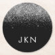 Silver Black Glitter Monogram Girly Name Initials Round Paper Coaster