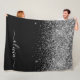 Silver Black Glitter Script Monogram Girly Name Fleece Blanket