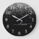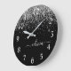 Silver Black Glitter Script Monogram Girly Name Large Clock