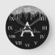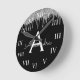 Silver Black Luxury Glitter Glam Monogram Name Round Clock