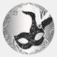 Silver black and white feather mask envelope seals and party favour labels. Mardi Gras mask envelope seals. These black and white masquerade party favour stickers are easily customised and you can add text and choose your own shape and size, simple choose the orange customise it button to begin customising for your party or event.