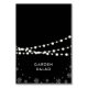 Add details to your special occasion with this winter party table top card. This design features stylish string lights, snowflakes and, custom text on a black background. Perfect for a modern silver & black winter wedding shower, or couple's wedding party. You can personalise the text and purchase each card individually. *This is a flat card. You will need to score and fold it half. Thank you.