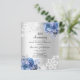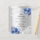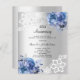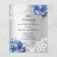 For an elegant and romantic 25th wedding anniversary. A faux silver looking background decorated with blue florals, roses and white lace. Personalise and add your names and details.