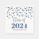 Customisable graduation napkins for class of 2024 with glamourous silver and blue confetti pattern.