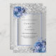 Silver blue floral luxury 25th wedding anniversary invitation