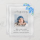 An elegant 2-page program. A faux silver background, a white frame, blue forget-me-not florals and space for a photo. Personalise and add name, dates and your text.