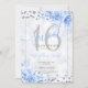 Silver Blue Floral Sweet 16 Marble Glitter Invitation