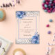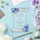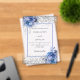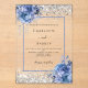 A clear, transparent background decorated with blue roses, flowers and faux silver confetti. Personalize and add your names and wedding details. Black letters.