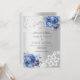 For an elegant and romantic wedding. A faux silver looking background decorated with blue florals, roses and white lace. Personalise and add your names and details.