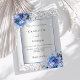 Faux silver looking background decorated with blue roses, flowers and confetti. Personalise and add your names and wedding details. Black letters.