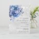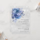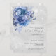 Faux silver looking background decorated with blue florals and faux glitter sparkles. Personalise and add your names and wedding details. Black coloured letters.