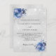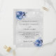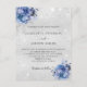 Faux silver looking background decorated with blue florals and faux glitter, sparkles. Personalise and add your names and wedding details. Black coloured letters.