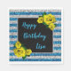 Silver Blue Glitter Stripes Yellow Roses Birthday Napkin