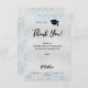 Faux silver looking background, decorated with light blue faux glitter, sparkles. Large hand lettered script with swashes and the text: Thank You. Personalise and add your thank you note and name, school name.