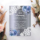 For an elegant and romantic 25th wedding anniversary, silverwedding. A dark faux silver looking background decorated with blue florals, roses, white lace. Personalise and add your names and details.