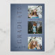 Real Silver Blue Modern Three Photos Graduation Textil Texture Metallic Foil Invitation Card with Envelope.