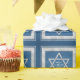 The text on this traditional blue and silver Star of David Hanukkah wrapping paper is customisable. To change it, you can use the personalise option. For more extensive text changes, such as changes to the font, font colour, or text layout, use the customise option. This wrapping paper can also be used for a variety of other Jewish special occasions (birthdays, anniversaries, weddings, Bat Mitzvah, Bar Mitzvah)... it's up to you. All you need to do is change the text. Note: This is a flat, printed design and the silver grey colour is simulated by the graphic and is not metallic ink. Chanukah, Hanukah wrapping paper.