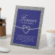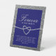 Elegant, simple glitter silver and royal blue wedding memorial table pedestal sign with romantic rope heart and modern calligraphy script.