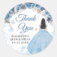 Silver Blue Winter Snowflake Mis Quince Thank You Classic Round Sticker