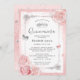 Silver Blush Pink Roses Watercolor Quinceanera Invitation